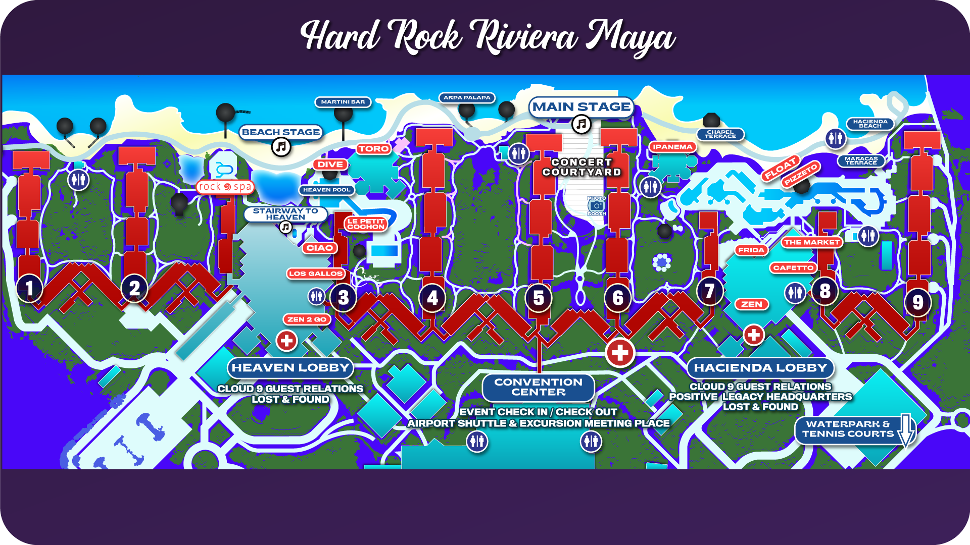 - Located in building 5 & 6 adjacent to the Caribbean