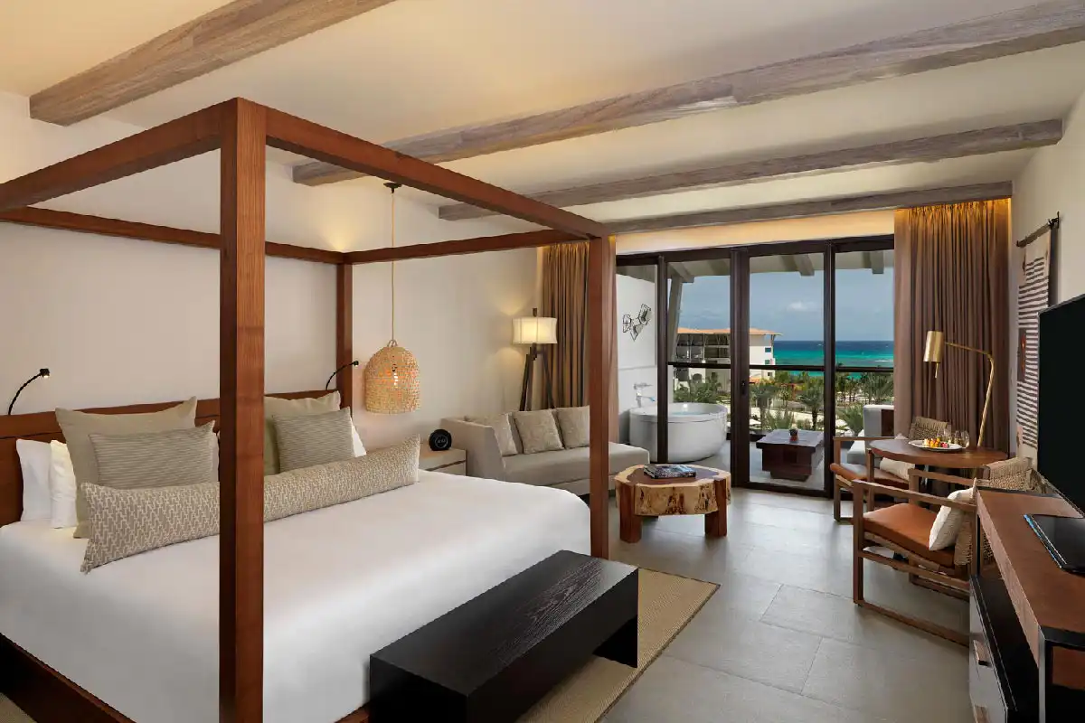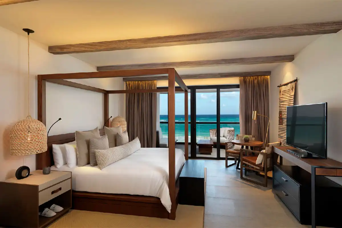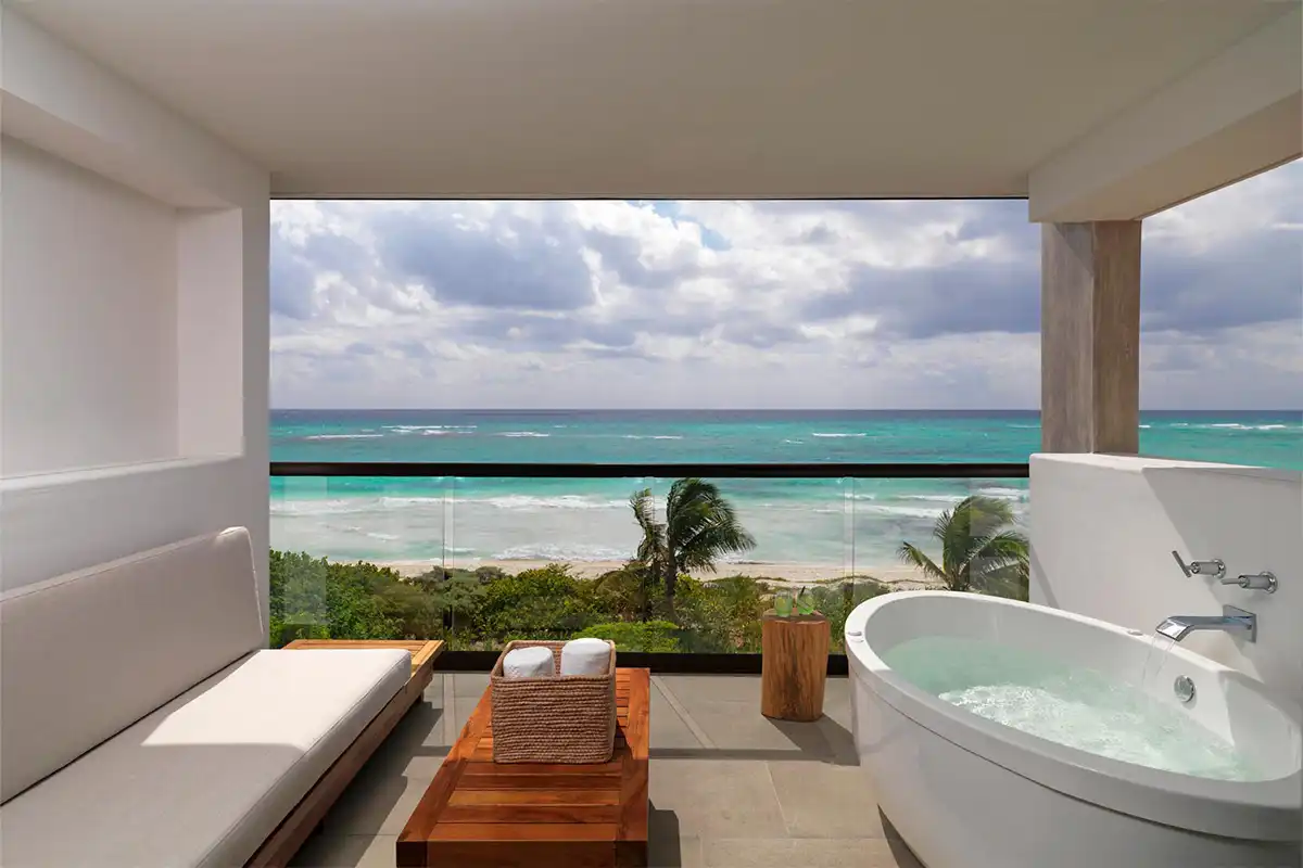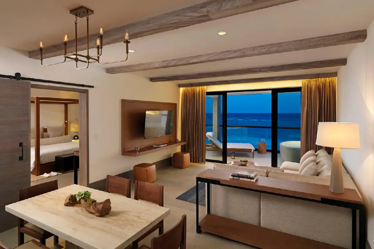 UNICO 20°87° offers 5-star adults-only accommodations with options like ocean view rooms and luxurious suites. All rooms mix modern luxury with comfortable and rustic decor inspired by the region’s history. Elegant clean lines and special hand touches await in UNICO's upscale rooms and suites.